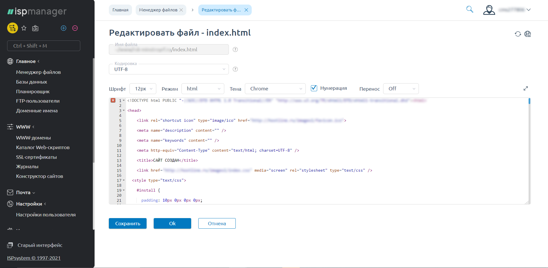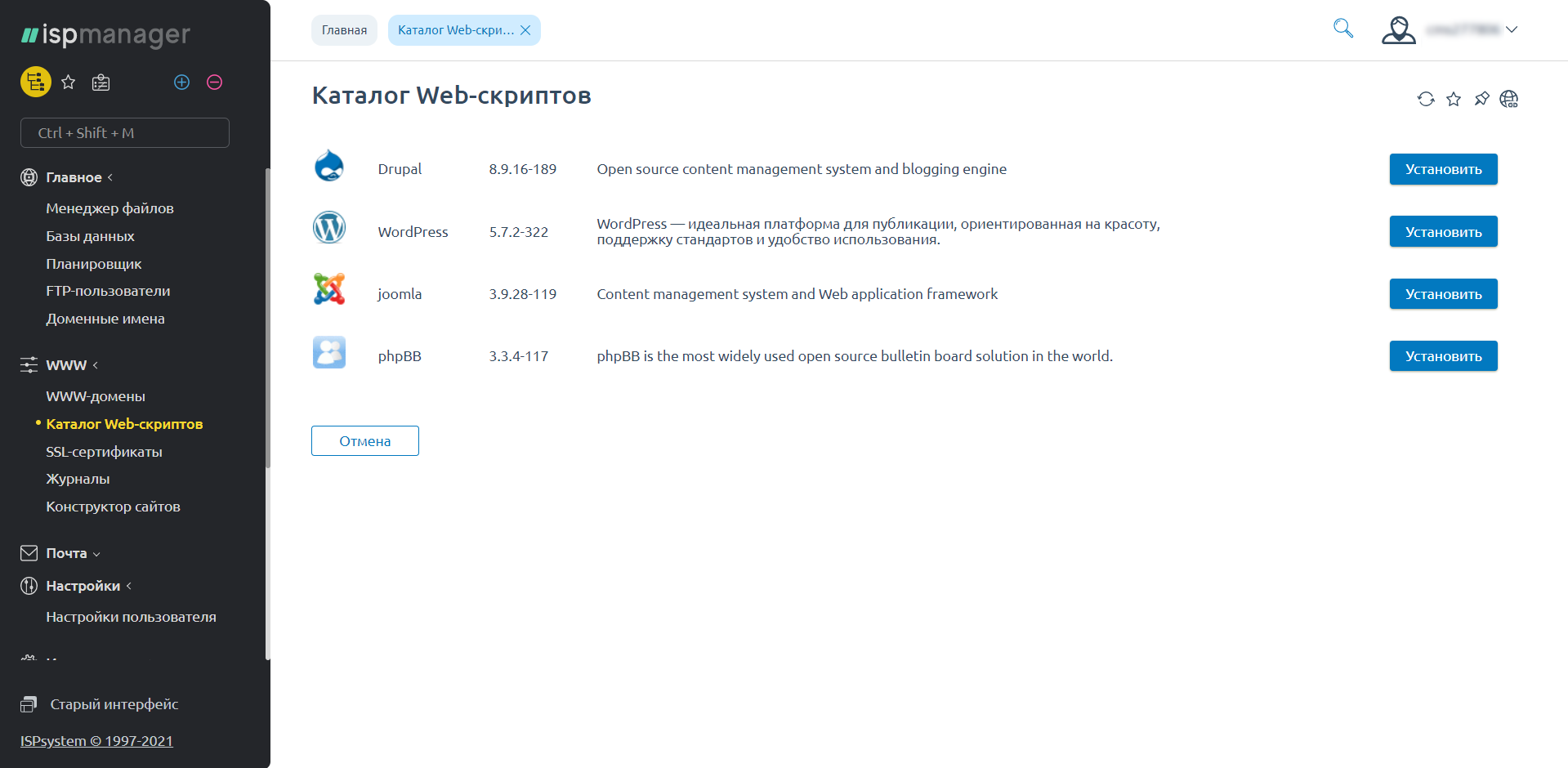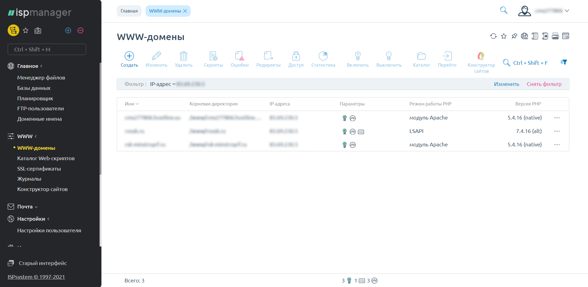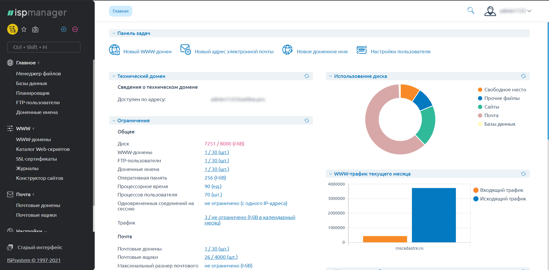 Панель управления ISPmanager 6 обладает всем необходимым функционалом для размещения и управления web-ресурсами. Простой интерфейс с большим количеством обучающего материала позволит разместить web-проект даже новичку.